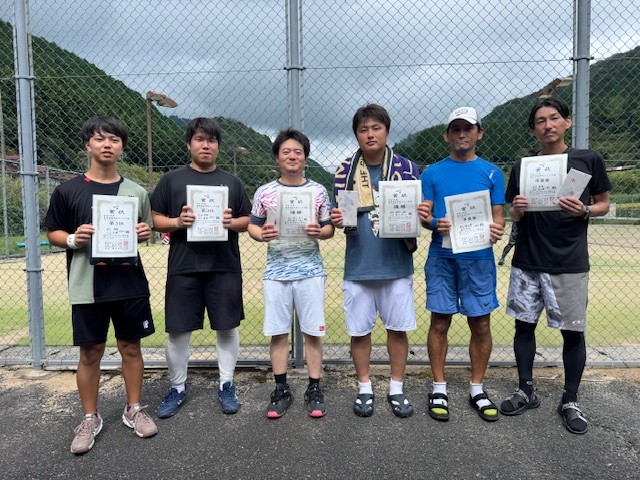 男子1部優勝(中) 安部・片山 準優勝(右) 宮本・田辺 3位(左) 大山・井上